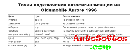 Точки подключения автосигнализации на Oldsmobile Aurore 1996