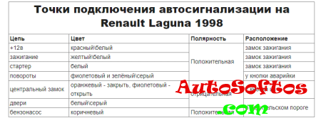 Точки подключения автосигнализации на Renault Laguna 1998 и Laguna II 2003