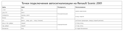 Точки подключения автосигнализации на Renault Scenic 2001