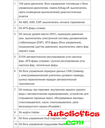 Общая схема размещения блоков предохранителей и реле ауди тт