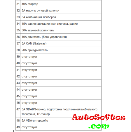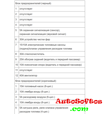 Точное описание предохранителей для Вашего автомобиля сверяйте с описанием на обратной стороне защитной крышки.
