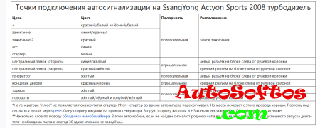 Точки подключения автосигнализации на SsangYong Actyon Sports 2008 турбодизель