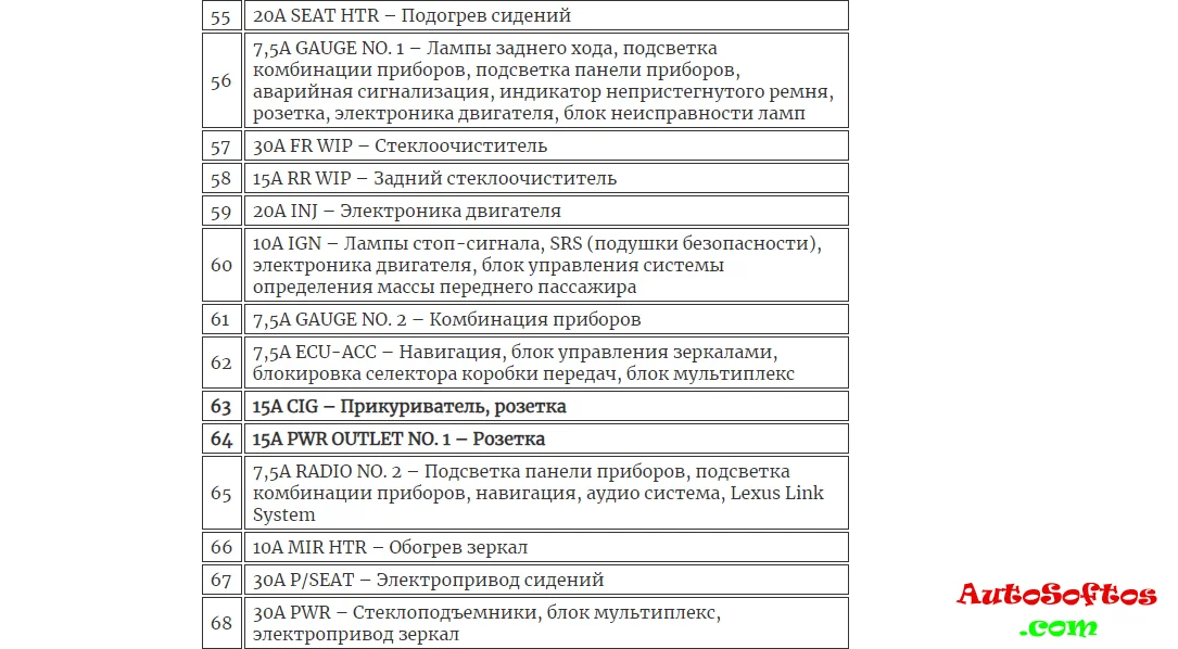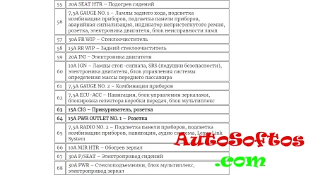 За прикуриватель и заднюю розетку отвечают предохранители 63 и 64. Ещё один предохранитель расположен в блоке под капотом.
