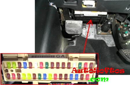 В салоне автомобиля блок с предохранителями расположен с левой стороны, под панелью приборов. Для доступа надо убрать крышку защиты.
