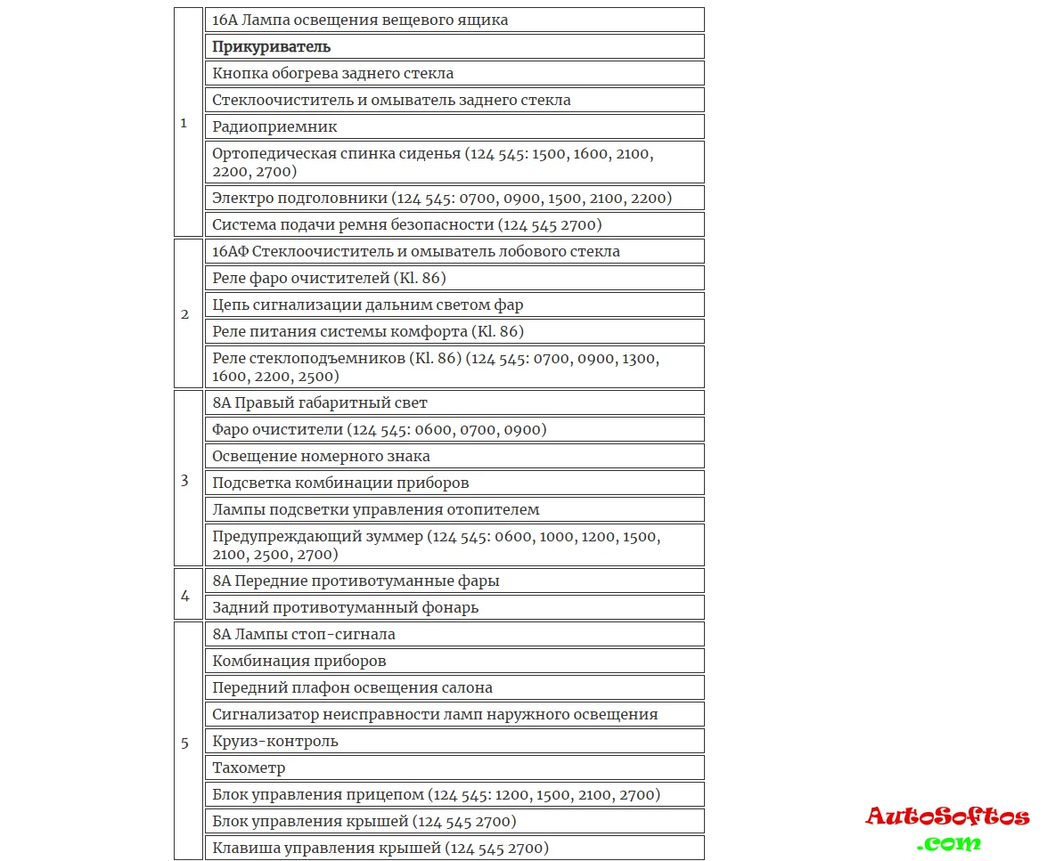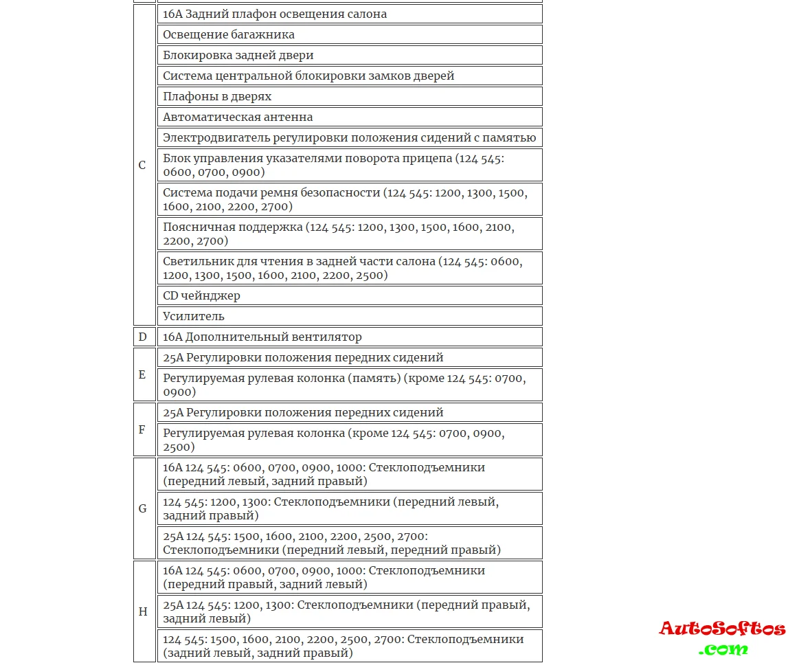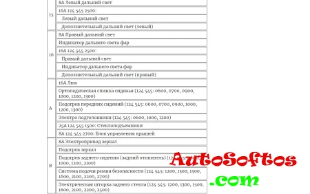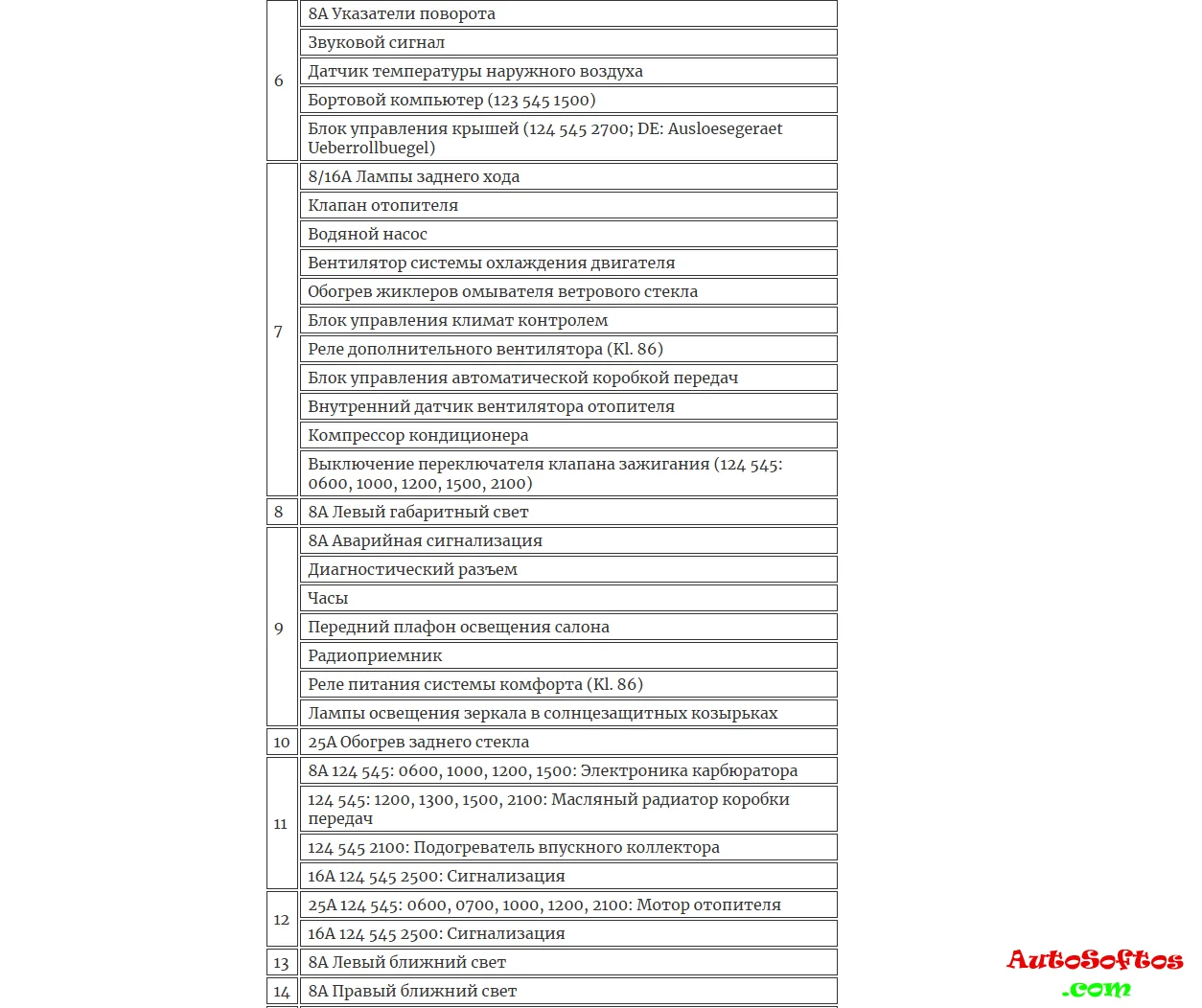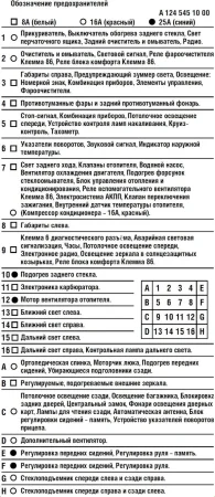 В скобках указан номер схемы блока предохранителей, который находится на крышке. (пример: 124 545 2200)