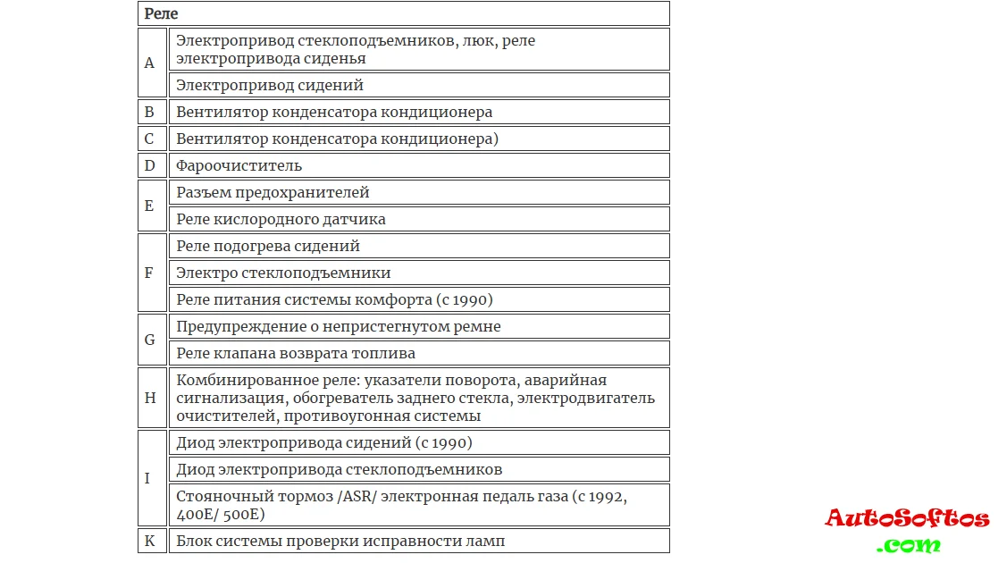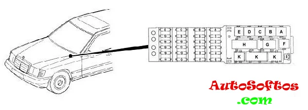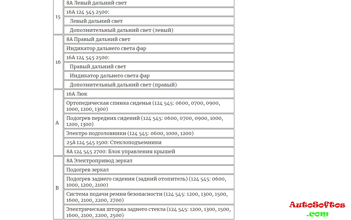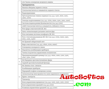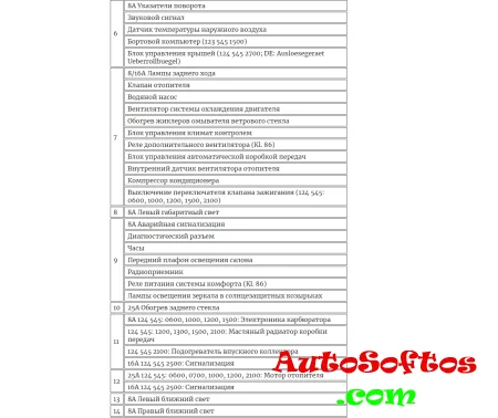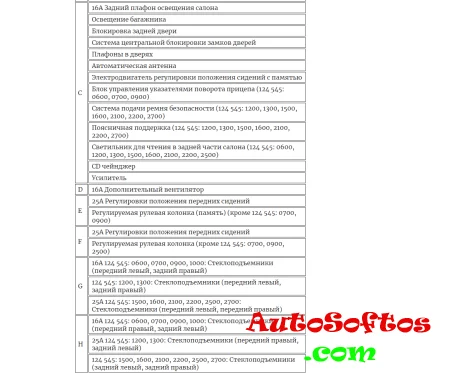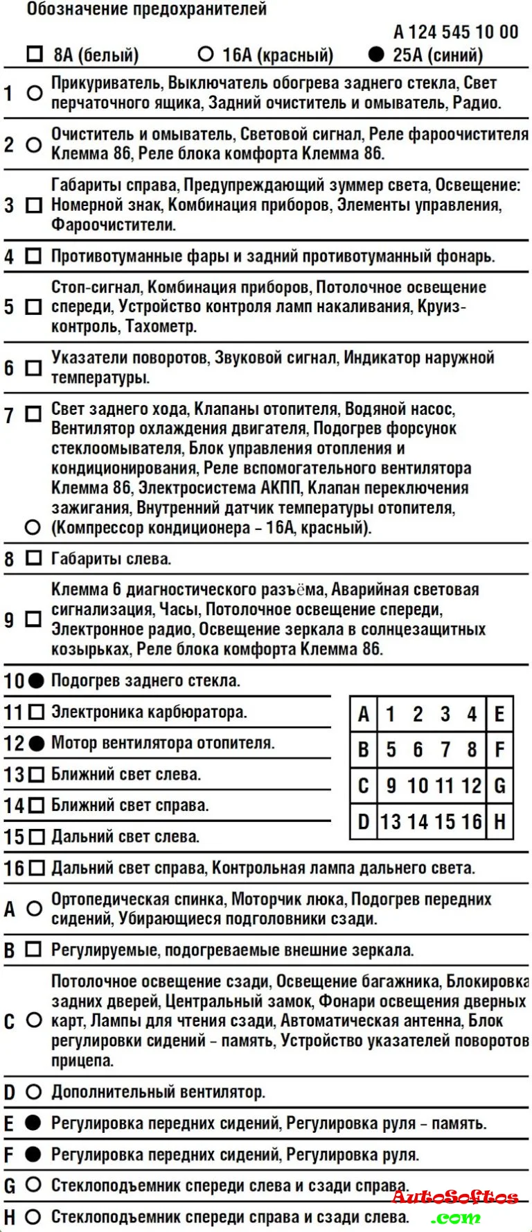 В скобках указан номер схемы блока предохранителей, который находится на крышке. (пример: 124 545 2200)