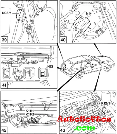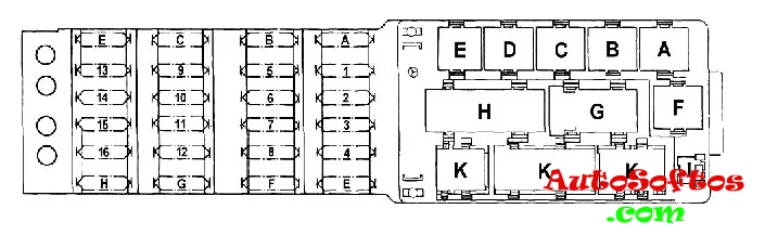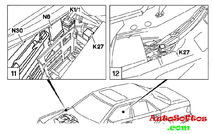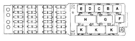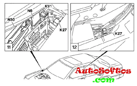 Сверяйте актуальной обозначение элементов со своей схемой на крыше блока, так как оно может отличатся от представленного и зависит от года выпуска, уровня оснащения и региона поставки вашего автомобиля.