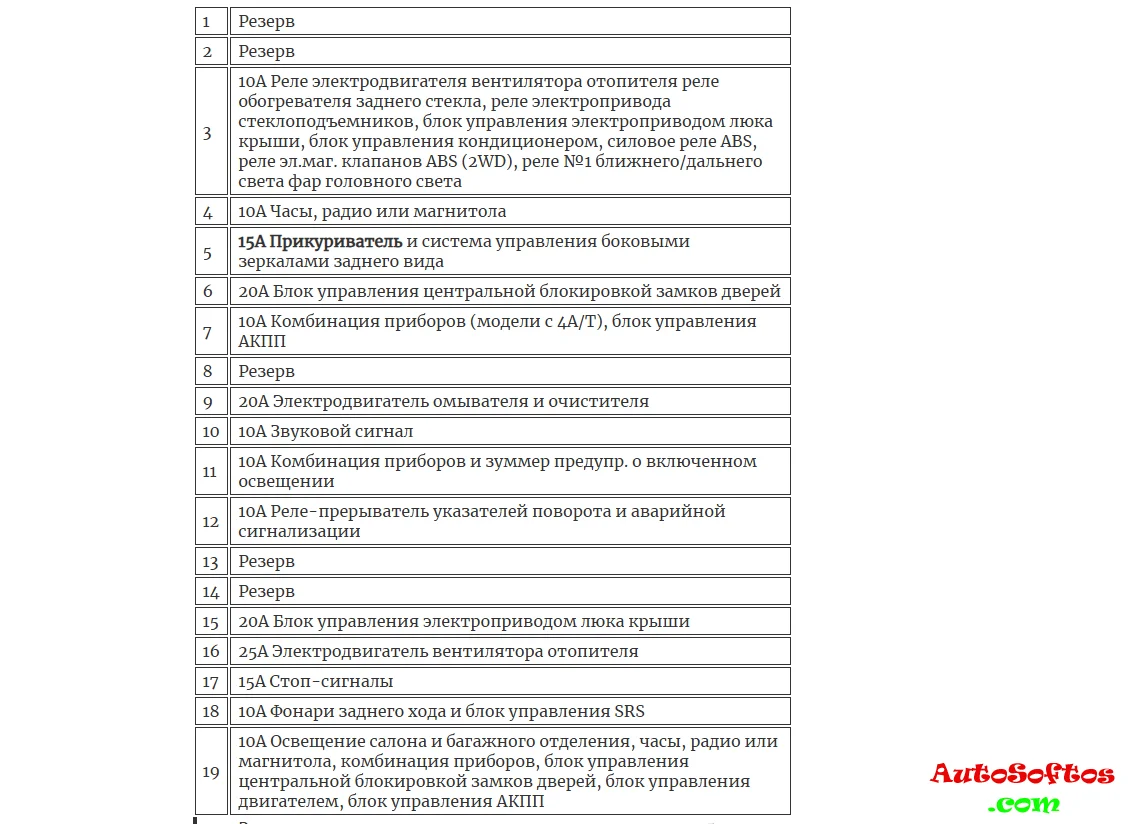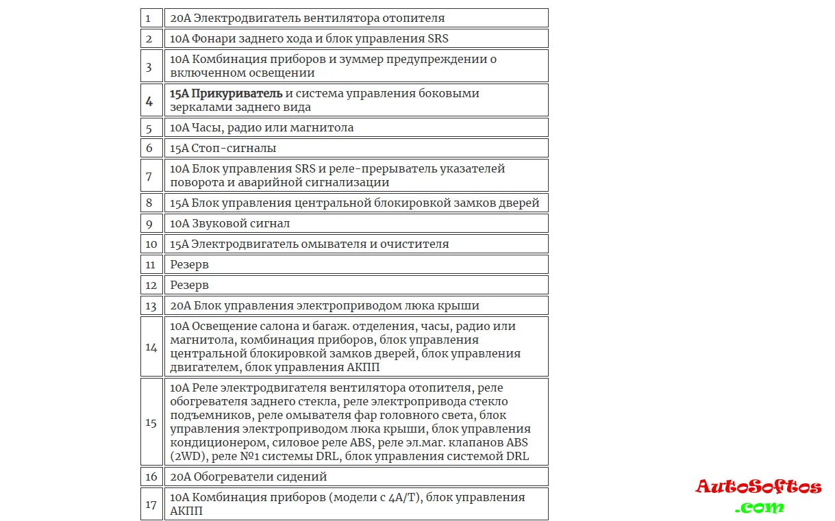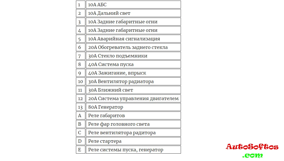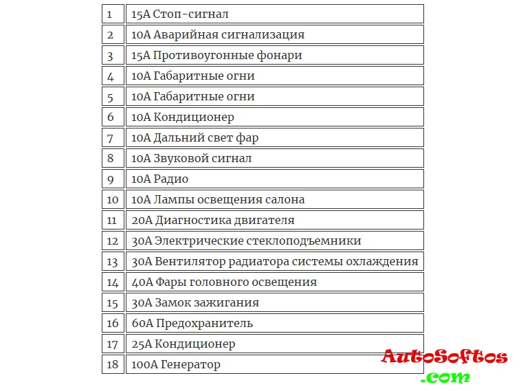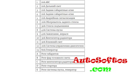 Расшифровка предохранителей