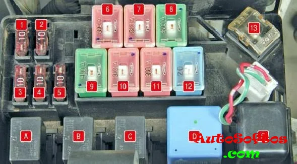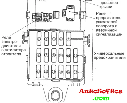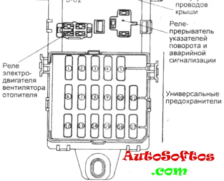 Тут располагаются предохранители и реле отвечающие за систему кондиционирования и обогрев.