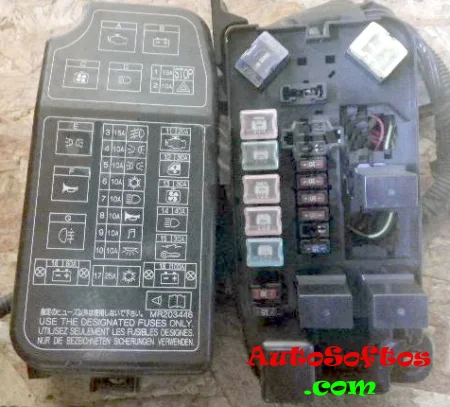 Он находится в салоне митсубиси мираж под панелью приборов слева, для машин с левым рулём.
