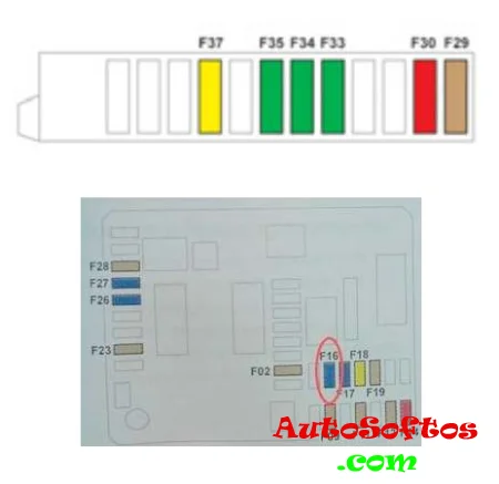 | F28. | 5А | Замок зажигания с блокировкой рулевой колонки. |