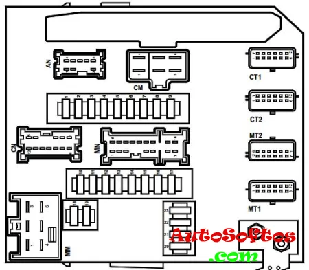 - FM1 — 60А Предохранитель электровентилятора системы охлаждения, блока защиты и коммутации