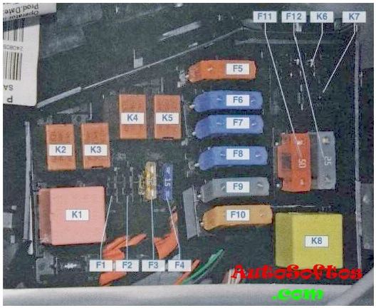 Отдельно, под противоугонным устройством, вдоль балки приборной панели могут находится реле дополнительного отопителя салона (1067 — 1068), а под щитком приборов реле обогрева заднего стекла (235).
