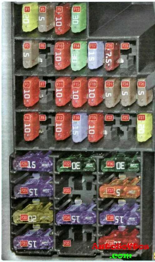 - 10А — Плафон освещения, освещение багажного отделения, освещение отделения для перчаток