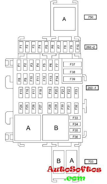 | Ef5. | 60A Цепи предохранителей Р11, Р24-Р27, Р34, Р39, Р41 |