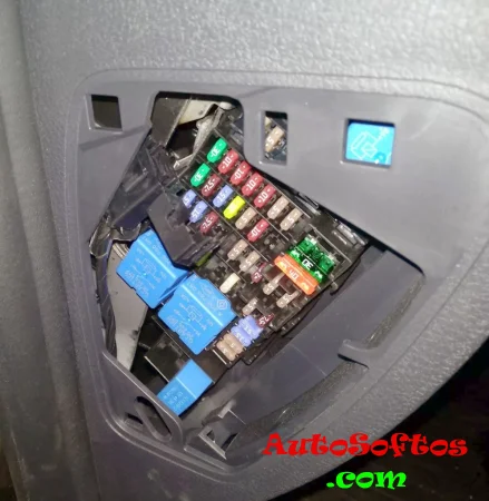 Расположен в торце приборной панели с водительской стороны за крышкой.