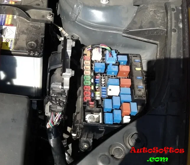 Под капотом в моторном отсеке основной блок с предохранителями и реле находится рядом с аккумуляторной батареей.