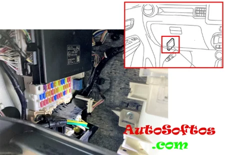 В салоне автомобиля блок предохранителей находится под панелью приборов с левой стороны, за бардачком.