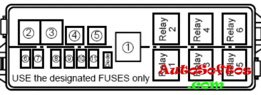 Находится рядом с аккумулятором, под защитной крышкой, на которой будет нанесена актуальная схема.