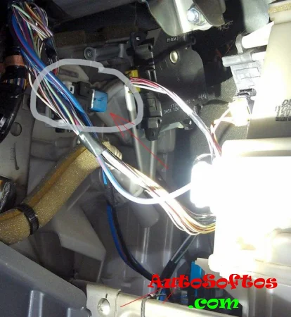 Он находится под панелью приборов со стороны водителя.