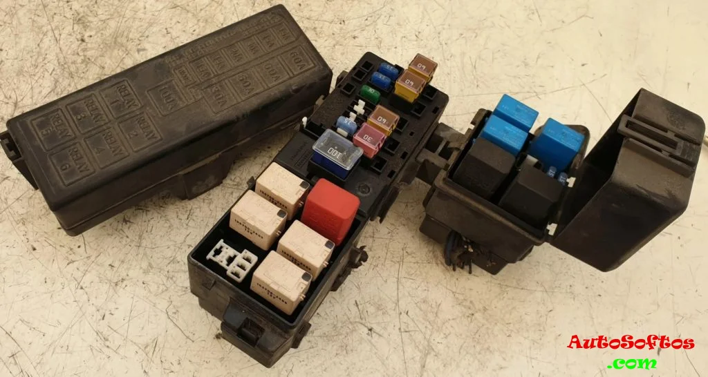 Отдельно, вне блока, под панелью могут находится некоторые реле: реле обогрева заднего стекла (зеленое), реле вентилятора отопителя и другие, а так же предохранитель на электрические стеклоподъемники и блок управления усилителем рулевого управления — на 30А.