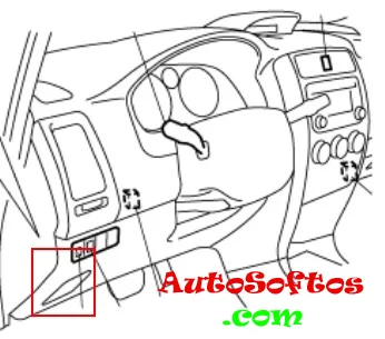 Он расположен под панелью со стороны водителя, за защитной крышкой.