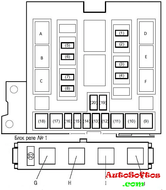 | 20. | 15А Правая фара (ближний свет), правая газоразрядная фара, реле ближнего света фар |