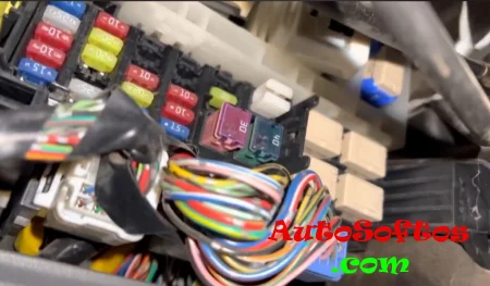 Он расположен с водительской стороны под панелью на боковой стенке (закрыт черной крышкой, на которой должно быть нанесена актуально назначение). К нему легче подобраться если снять панель которая под рулевой колонкой (крепится по углам на 4 самореза).