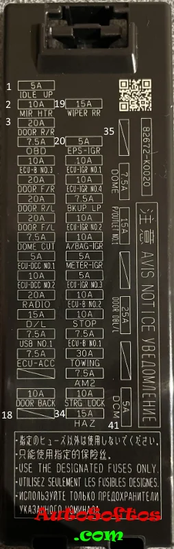 | ECU-B NO.2 | 10А ABS, кондиционер, автоматический дальний свет, автоматическое управление светом, система удержания тормоза, зарядка, управление замком двери, система помощи при спуске, электрический стояночный тормоз, система въезда и запуска, головной свет, система помощи при старте на подъеме, гибридная система, иммобилайзер, система автоматического выключения света, напоминание о включении света, электрическое стекло, система управления переключением передач, запуск, блокировка руля, система остановки и запуска, TRC, VSC, беспроводной контроль замка двери |