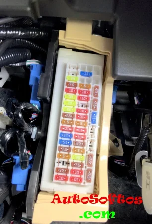 В салоне автомобиля блок с предохранителями расположен с левой стороны под панелью приборов. Для доступа надо убрать защитную крышку.