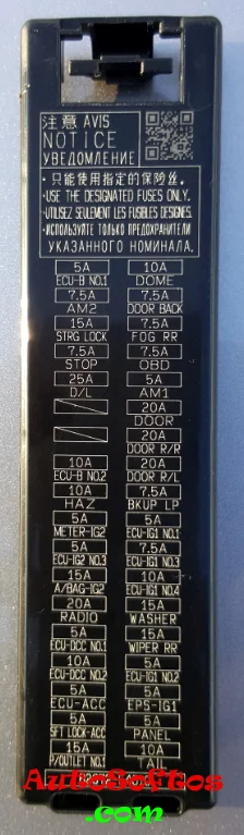 | ECU-IG1 NO.2 | 5A ABS, система удержания тормоза, электрический стояночный тормоз, система помощи при старте на подъеме, TRC, VSC |