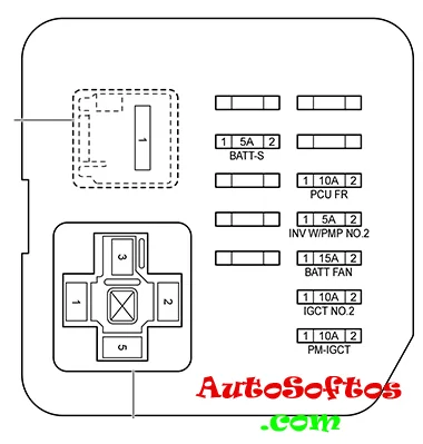 | ECU-IG1 NO.1 | 5A ABS, Система удержания тормоза, Круиз-контроль, Электрический стояночный тормоз, Система помощи при старте на подъеме, Гибридная система, Система контроля переключения передач, Телематическая система, TRC, VSC |