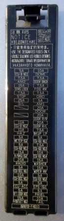 | D/L | 15A Управление замками дверей, система въезда и запуска, система иммобилайзера, запуск, блокировка руля, беспроводное управление замками дверей |