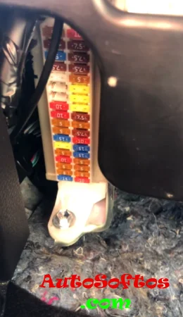 В салоне автомобиля блок с предохранителями расположен с левой стороны под панелью приборов. Для доступа надо убрать защитную крышку.