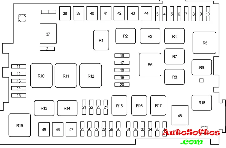 | 47. | 50A ABS SOL — 2002-2004: Антиблокировочная тормозная система, система контроля тяги (модели 2WD), активная система контроля тяги (модели 4WD), система контроля устойчивости автомобиля. |