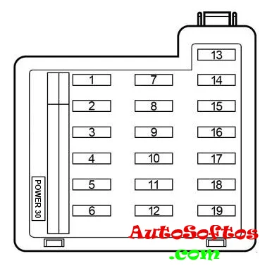 | 12. | 15A ACC — Прикуриватель, радио, зеркала с электроприводом, вспомогательное оборудование |