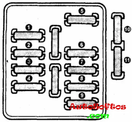 | 2. | 7,5A MERT (освещение приборов, фонари заднего хода) |