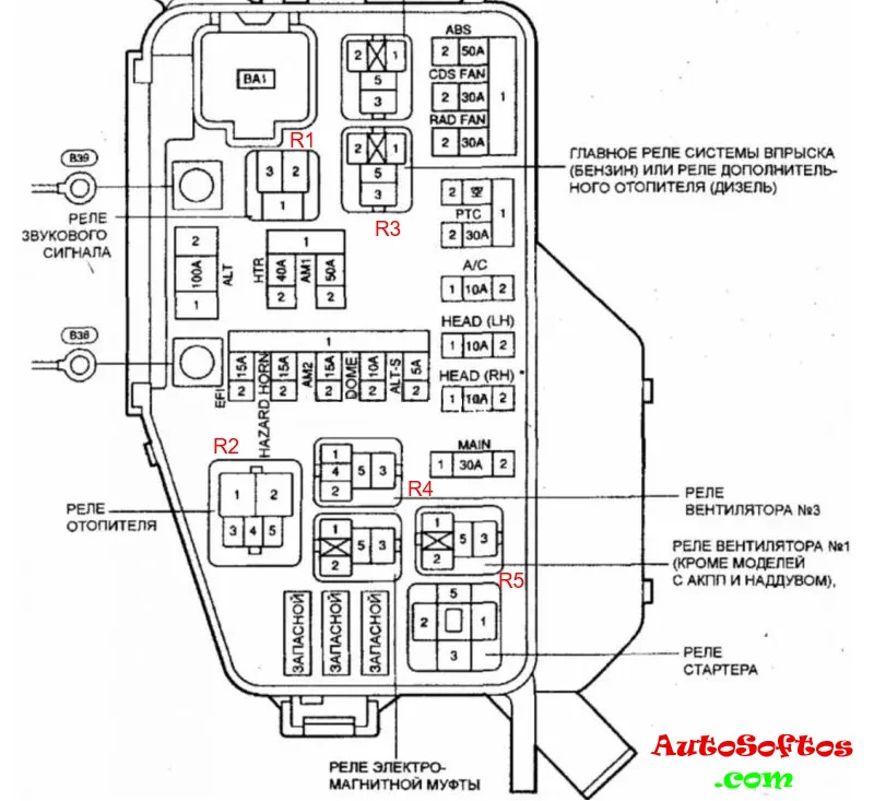 | 2. | 20A RADIATOR FAN (эл. вентилятор) (при наличии ABS 30А) |