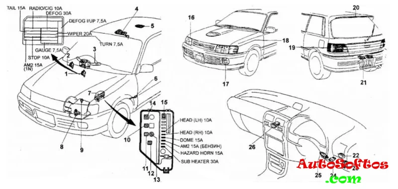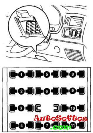 Здесь вы найдёте информацию о расположении электронных блоков управления, описание предохранителей и реле Тойота Старлет со схемами блоков для автомобилей выпускавшихся в 1989, 1990, 1991, 1992, 1993, 1994, 1995, 1996, 1997, 1998, 1999 годах представляющих 4 и 5 поколение обозначавшееся Р80 и Р90 соответственно. Выделим предохранитель прикуривателя.