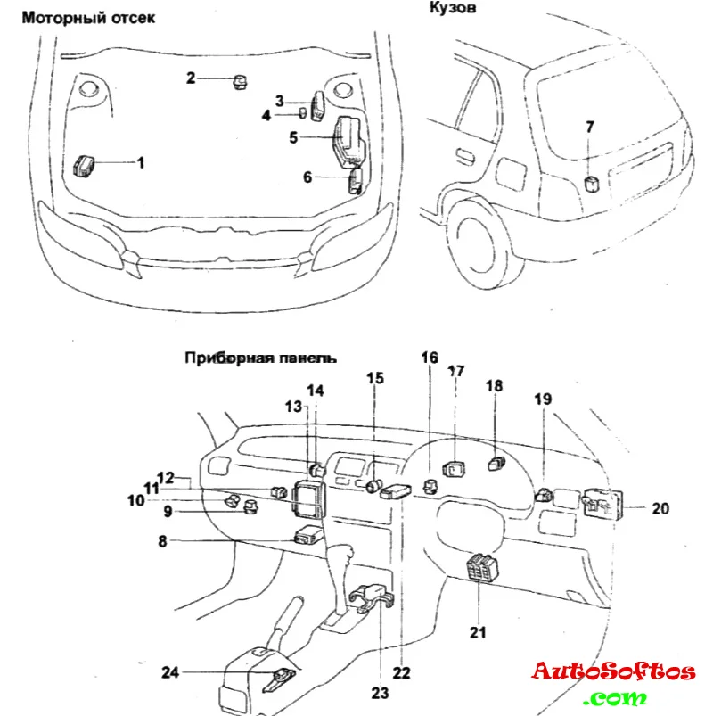 | 9. | 15A CUB (электронный блок управления карбюратором) |