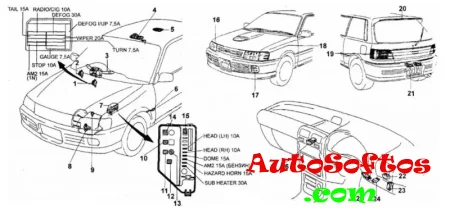 | 6. | 15A HAZARD (указатели поворота и аварийная сигнализация) |