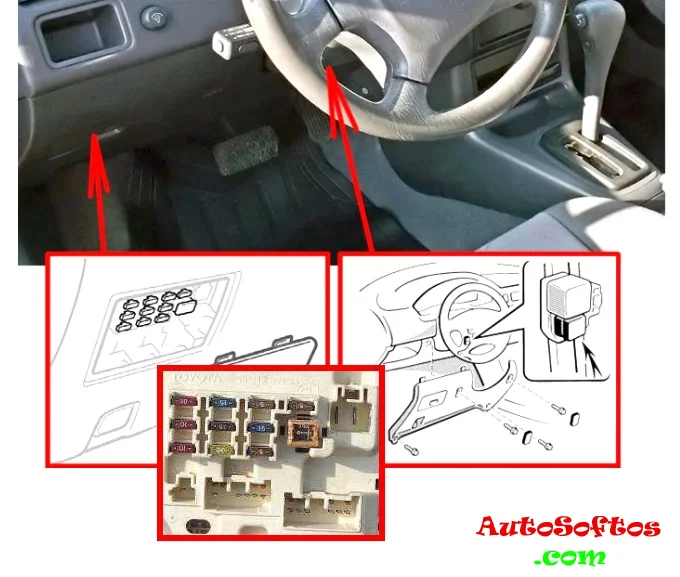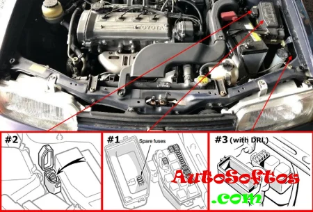 Здесь мы покажем описание предохранителей и реле Тойота Корса (Терсел) со схемами блоков и местами их расположения. Выделим предохранитель прикуривателя.