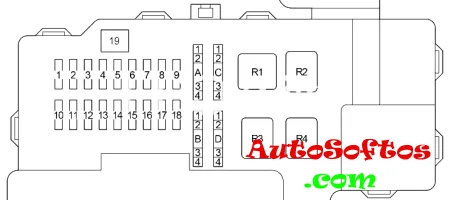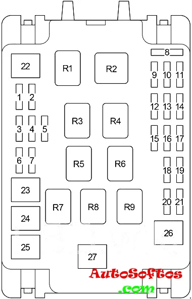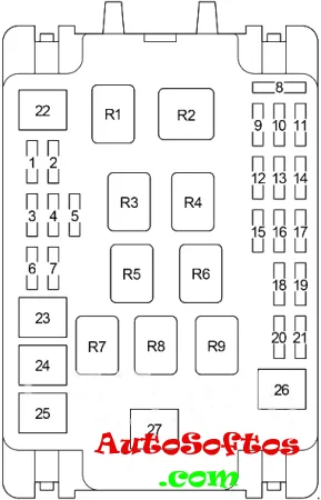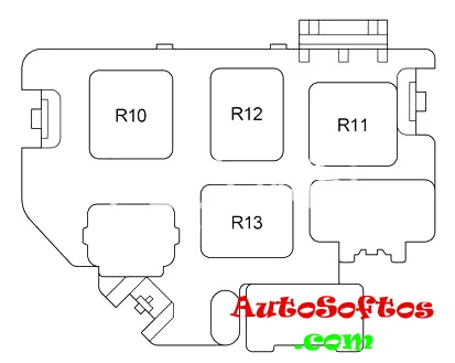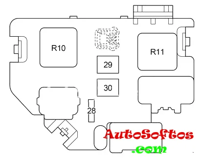 | 11. | 25A AM1 — Система запуска, предохранители: «CIG”, «ECU ACC”, «SRS−IG”, «WASHER”, «WIPER”, «BK/UP LP”, «TENS RDC”, «DEF RLY”, «BODY ECU−IG”, «TURN”, «HTR”, «WARNING”, «FAN RLY”, «ABS−IG”, «ECU−IG” |