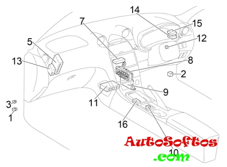| 14. | 25A DCC — Предохранители: «RADIO”, «DOME”, «MPX−B”, «ECU−B” |