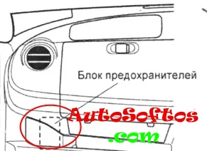 В салоне основной блок с предохранителями и реле находится в левой части приборной панели за защитной крышкой.