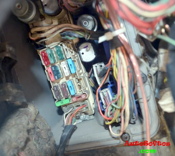 В салоне основной блок предохранителей и реле находится под панелью со стороны водителя на стойке за защитной крышкой.