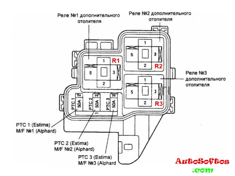 R1, R2, R3 — Реле дополнительного отопителя