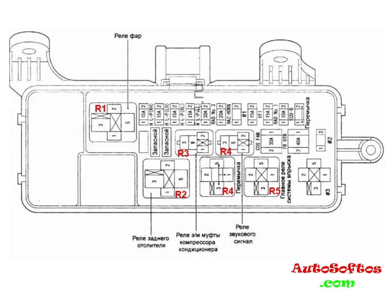 - R3 — Реле муфты кондиционера