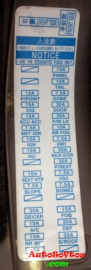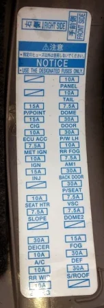Здесь мы покажем описание предохранителей и реле Тойота Альфард 2003, 2004, 2005, 2006, 2007, 2008, 2009 годов выпуска с их схемами, фотографиями и местами расположения. Выделим предохранитель прикуривателя.