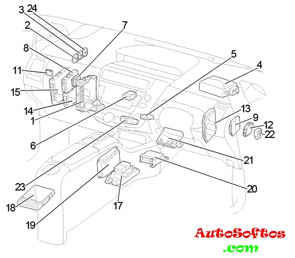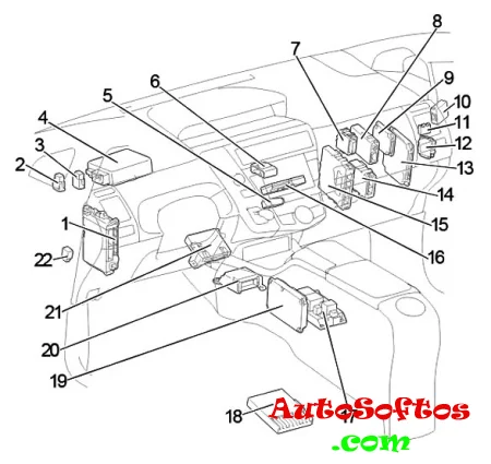 Здесь мы покажем расположение электронных блоков управления, описание предохранителей и реле Тойота Приус 40 41 со схемами блоков и местами их расположения. Выделим предохранитель отвечающий за прикуриватель.